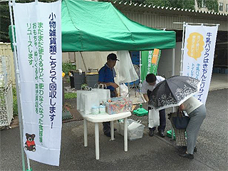 りり.こむでは、各種イベントでの回収、集団資源回収とセットでの回収を行っています。入れ替えの早い子供用品、育児用品、買い替えて使わなくなった食器類など、捨てるに捨てられなくて困っている方も多く、団体で取り組んでいただくと会員の皆様からも喜ばれているとの声も頂いております。